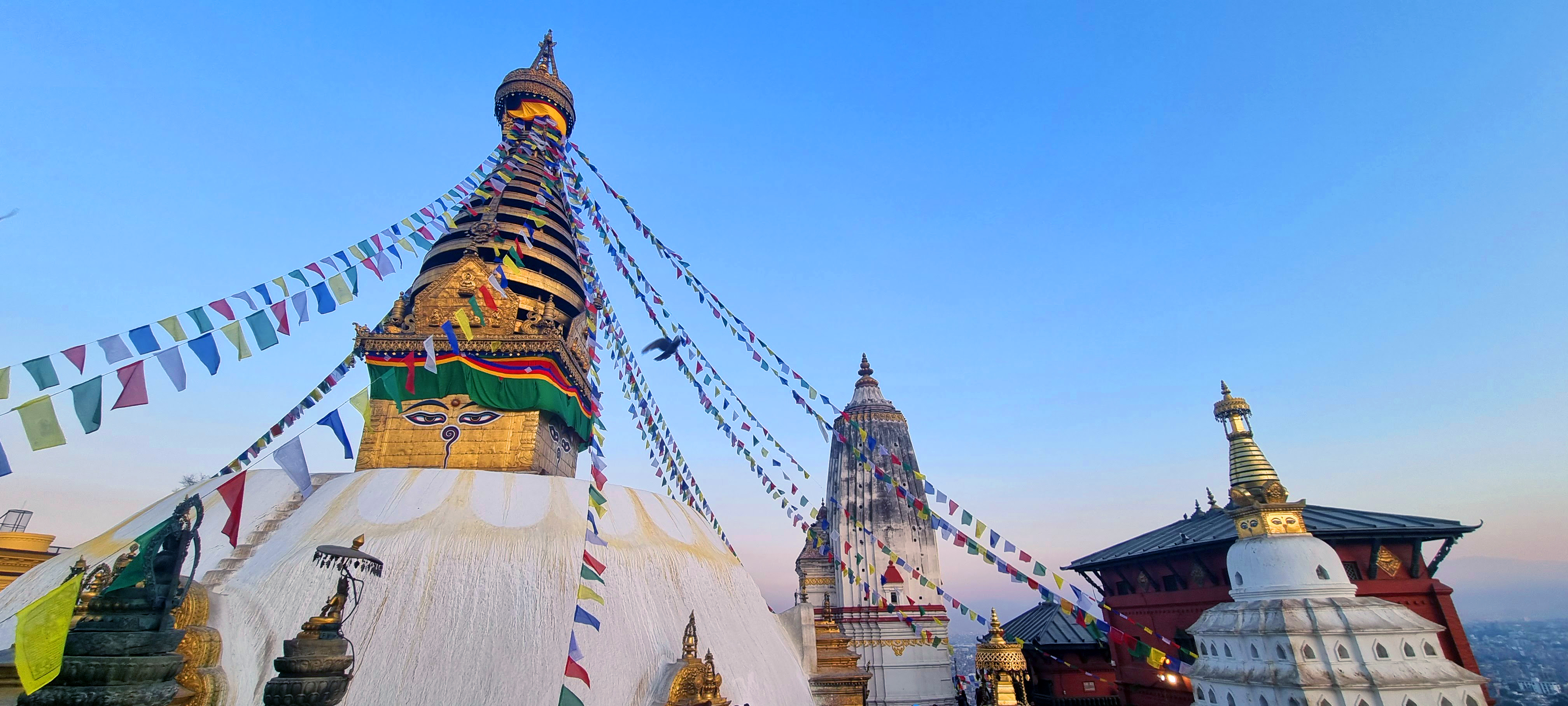 विश्वको सर्वोच्च शिखर सगरमाथा (८८४८.८६ मिटर), नुप्सेलगयाताका हिमालहरुको प्यनारोमिक दृश्य, …