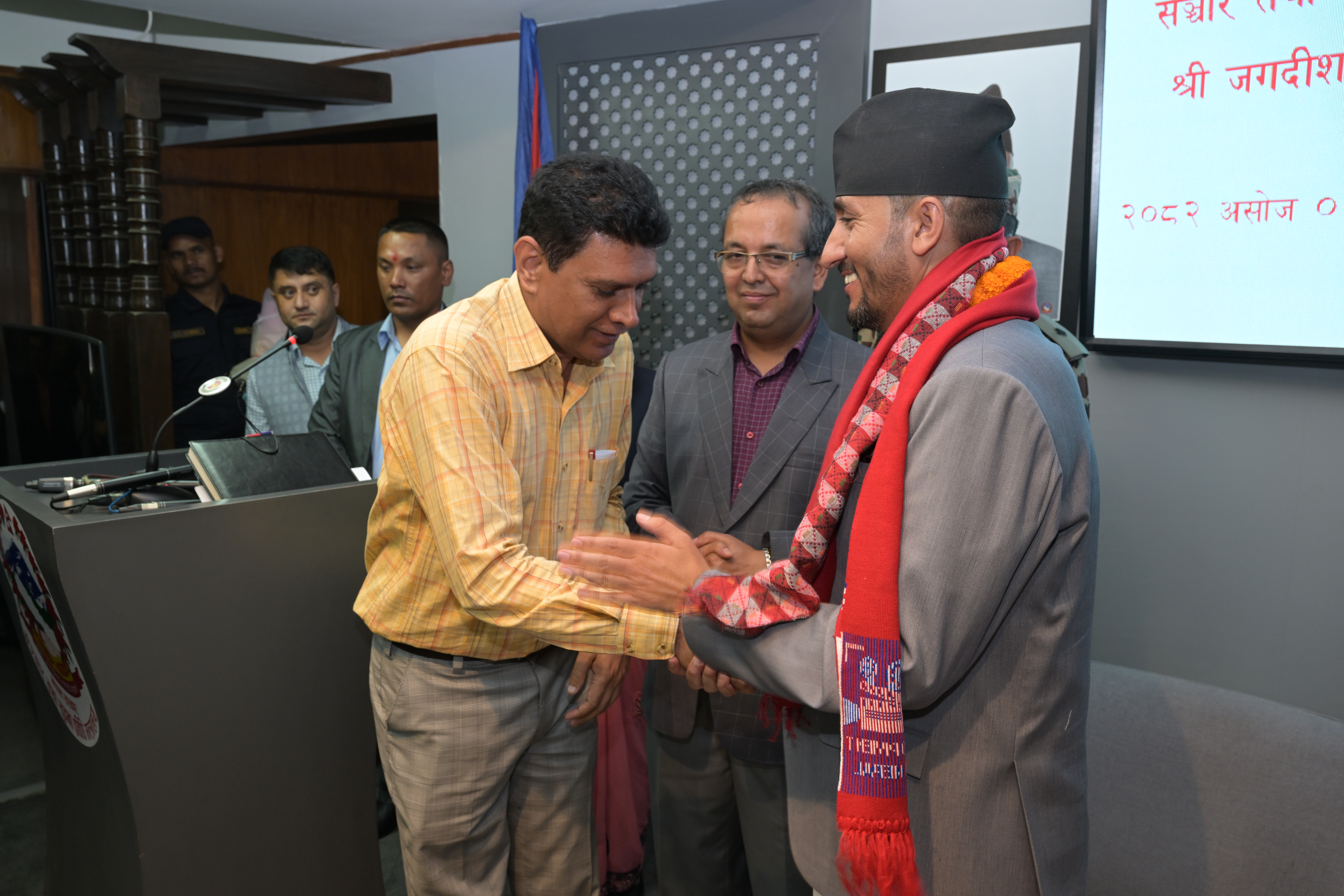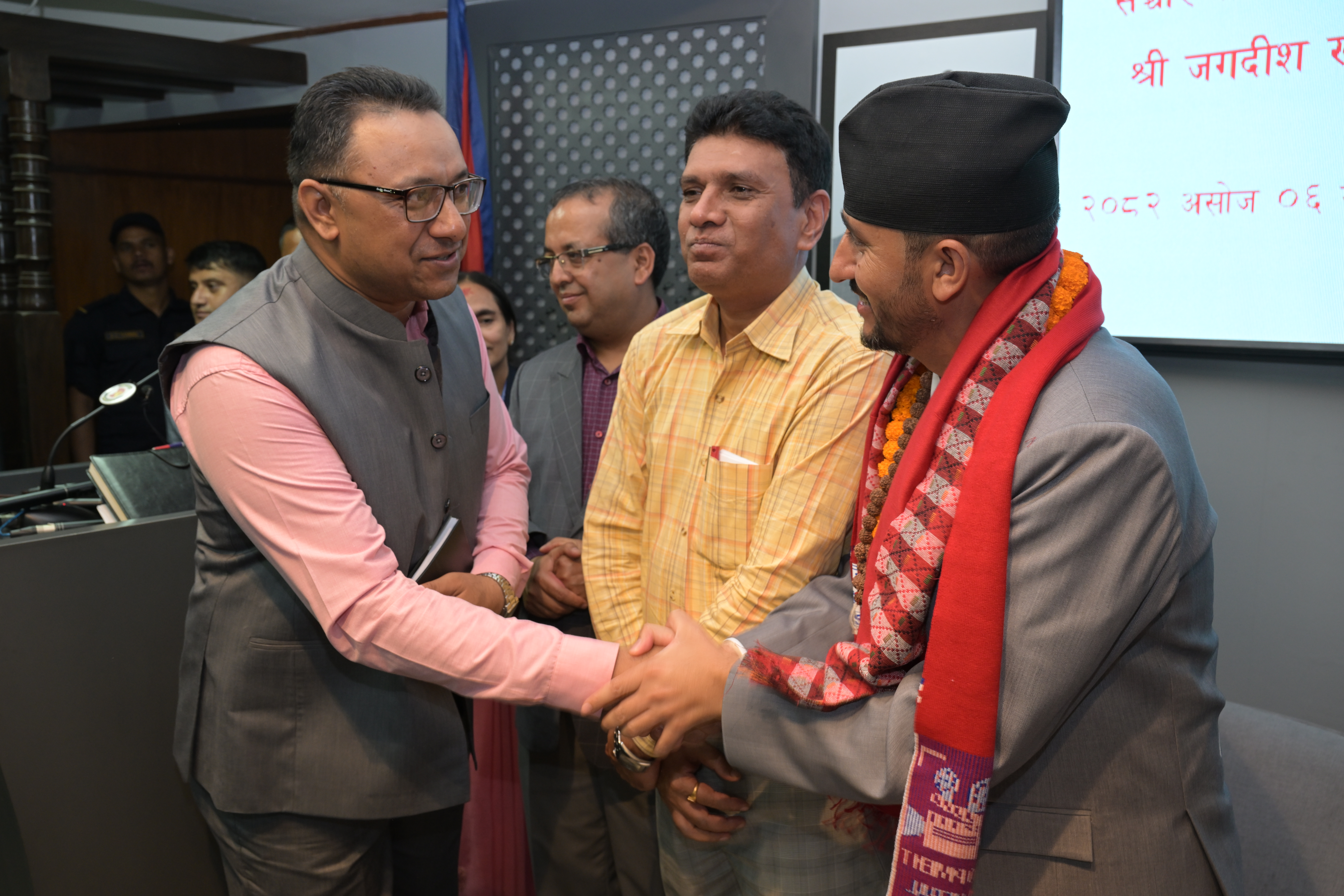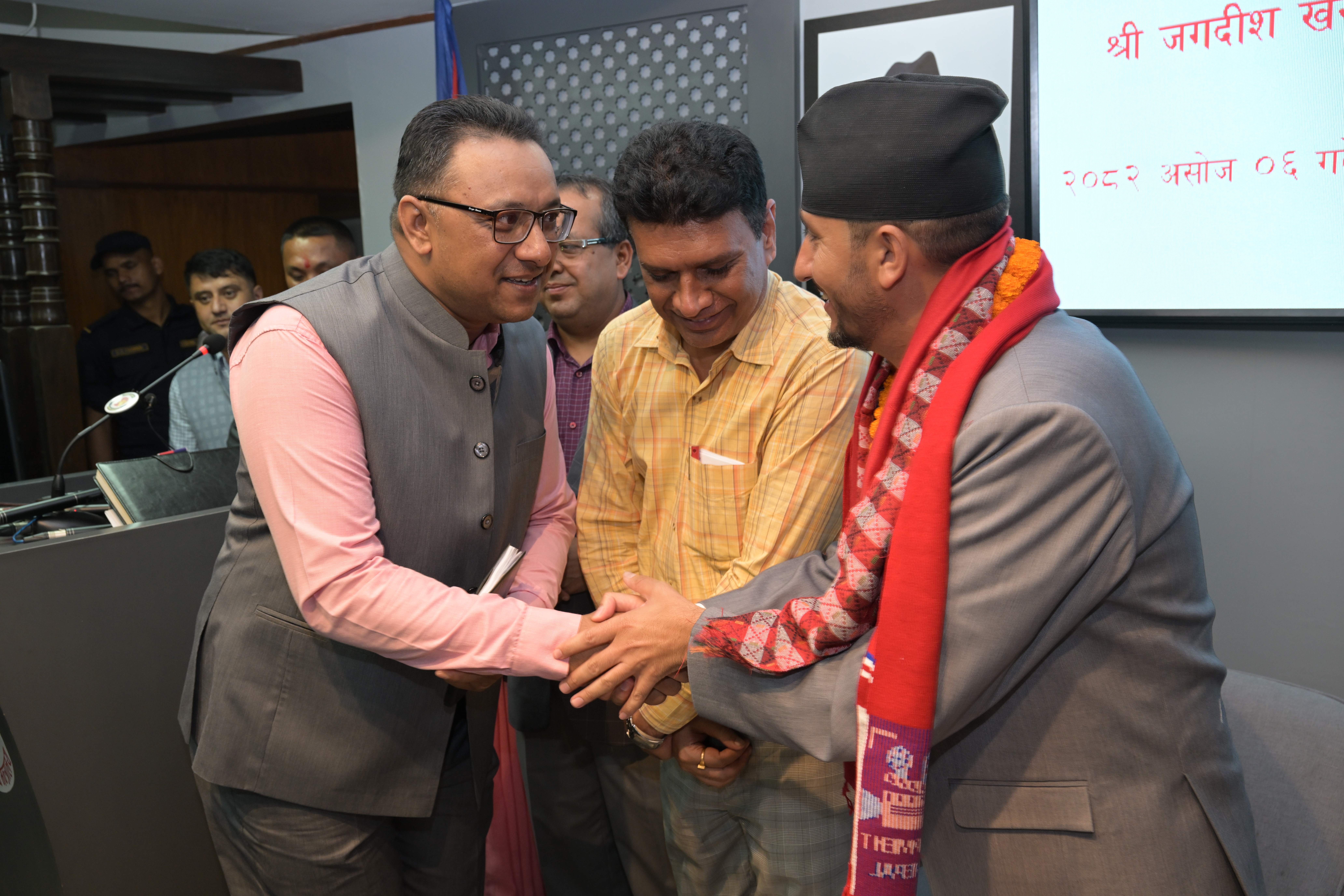 नवनियुक्त माननीय सञ्चार तथा सूचना प्रविधि मन्त्री श्री जगदीश खरेलज्यूको स्वागत कार्यक्रम