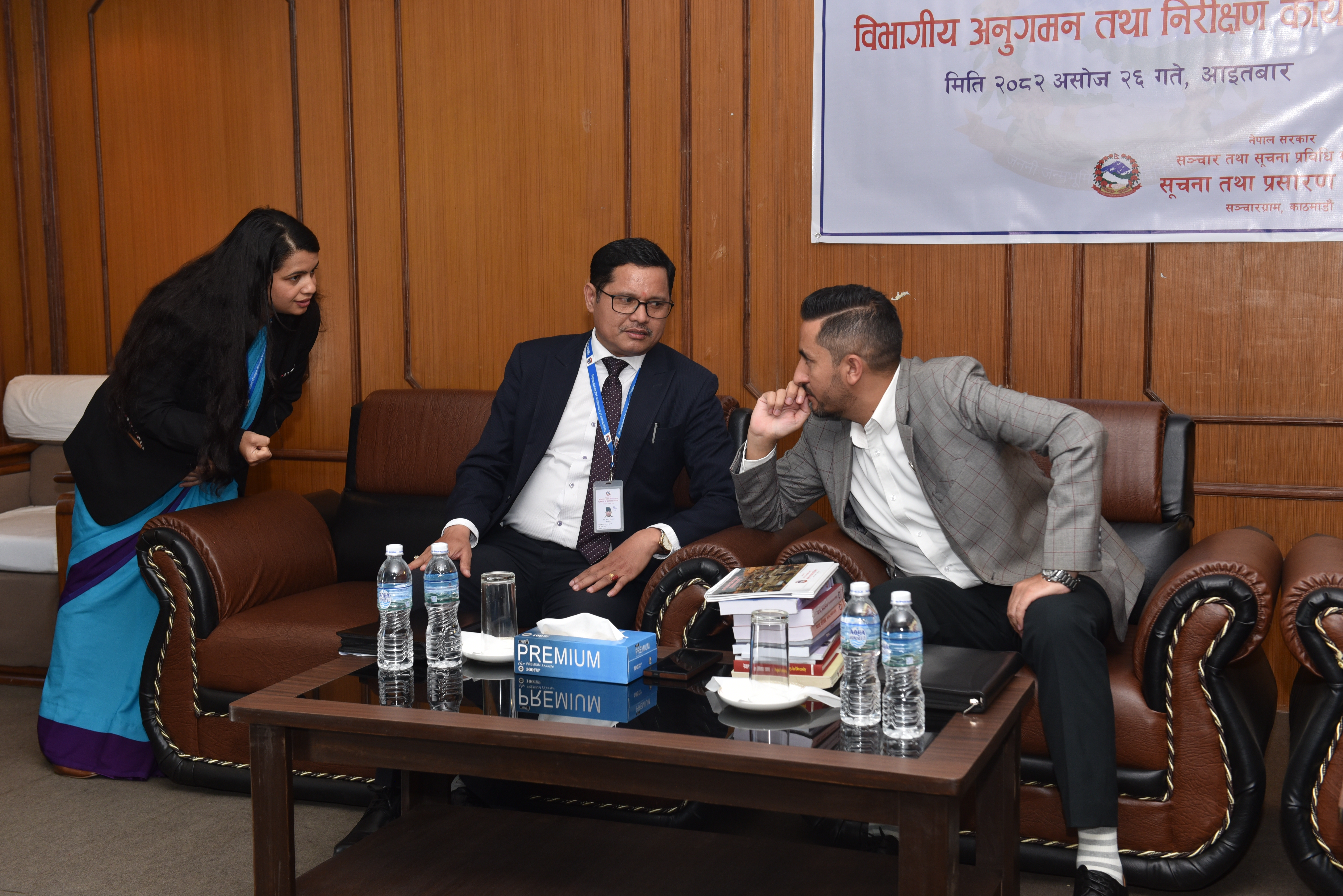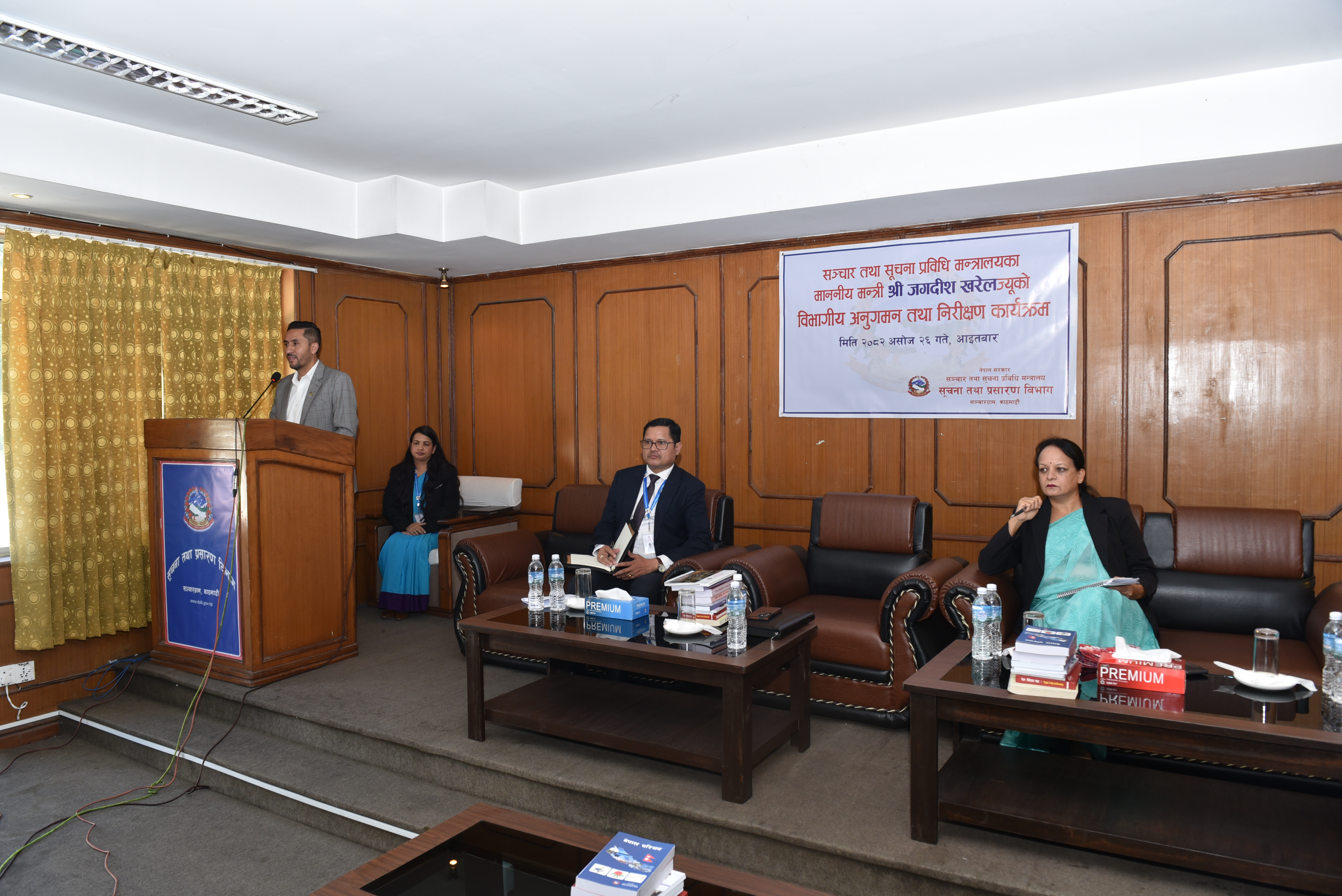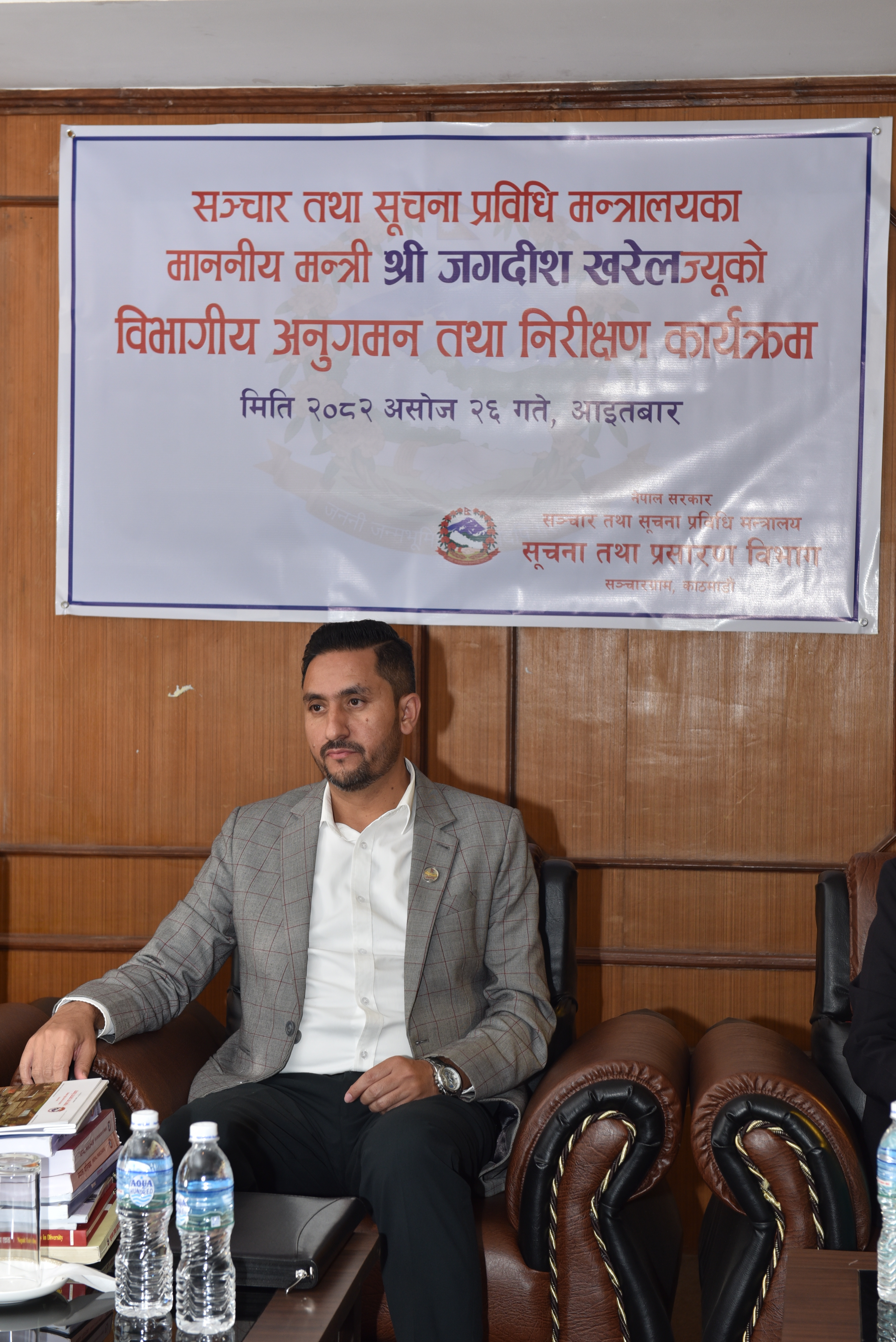 सञ्चार तथा सूचना प्रविधि मन्त्री श्री जगदीश खरेलज्यू द्वारा सूचना तथा प्रसारण विभागको निरिक्षण २०८२-०६-२६