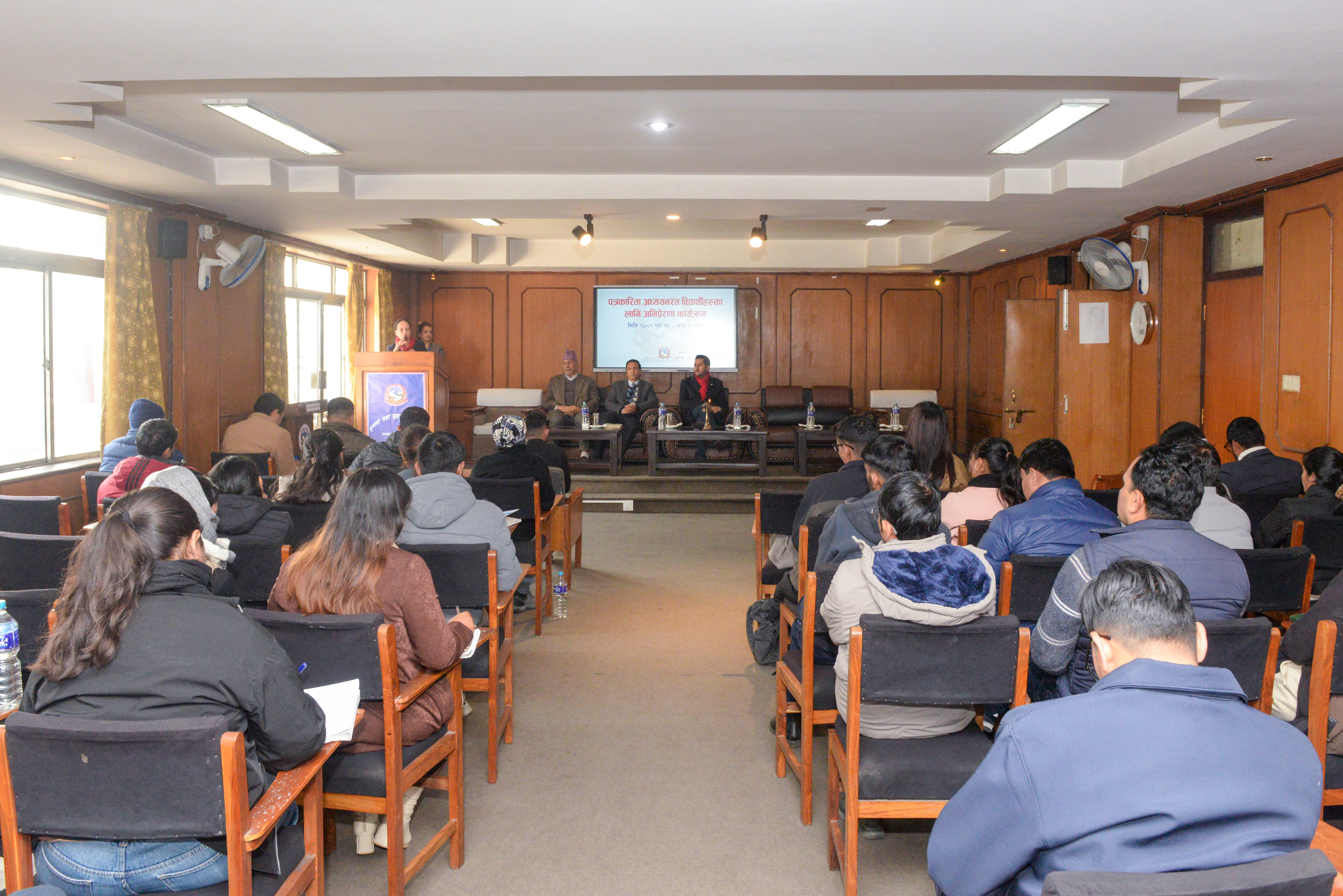 पत्रकारिता अध्ययनरत विद्यार्थीहरूका लागि अभिप्रेरणा कार्यक्रमको उद्घाटन समारोह। २०८२-०९-२९