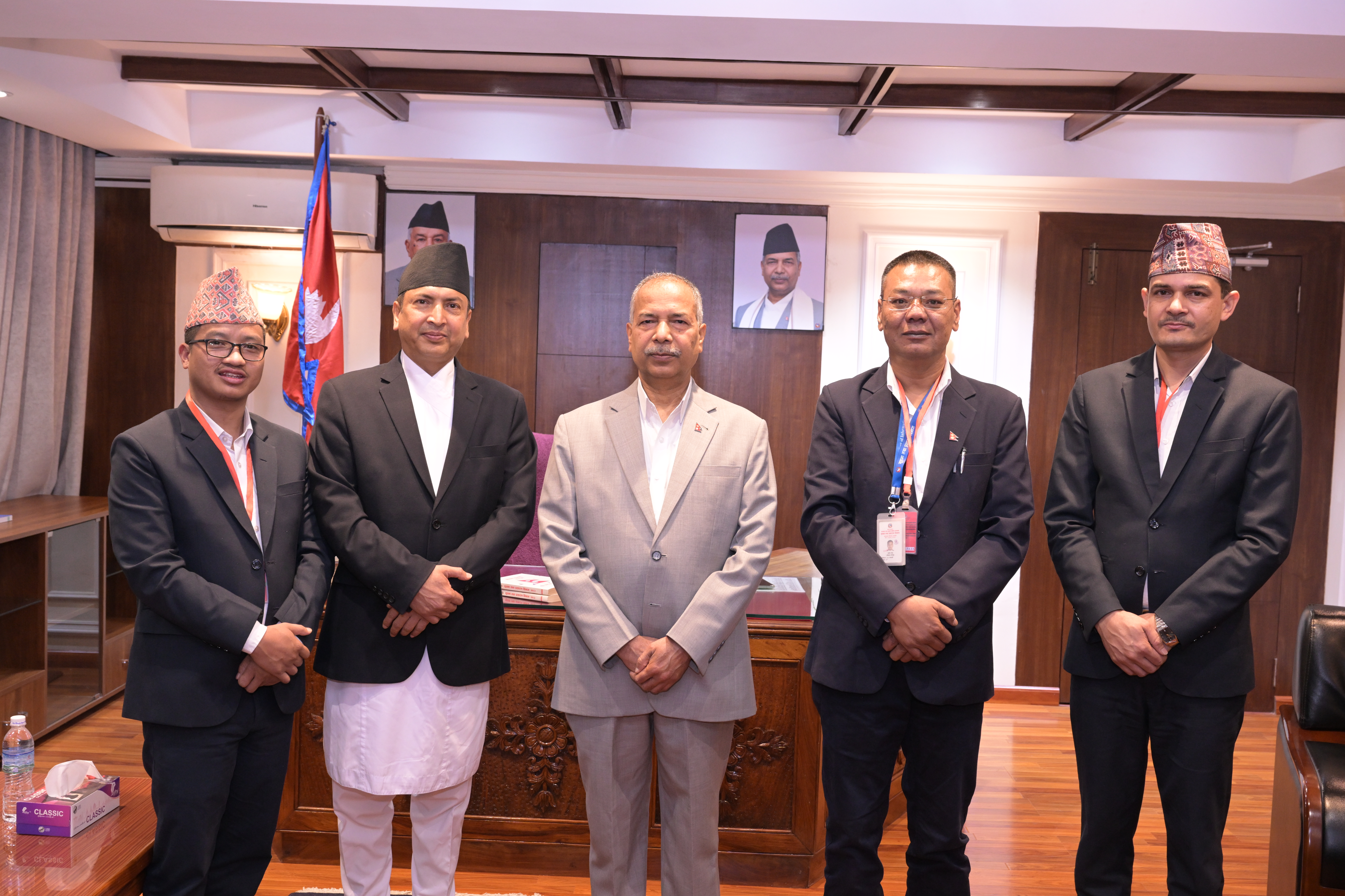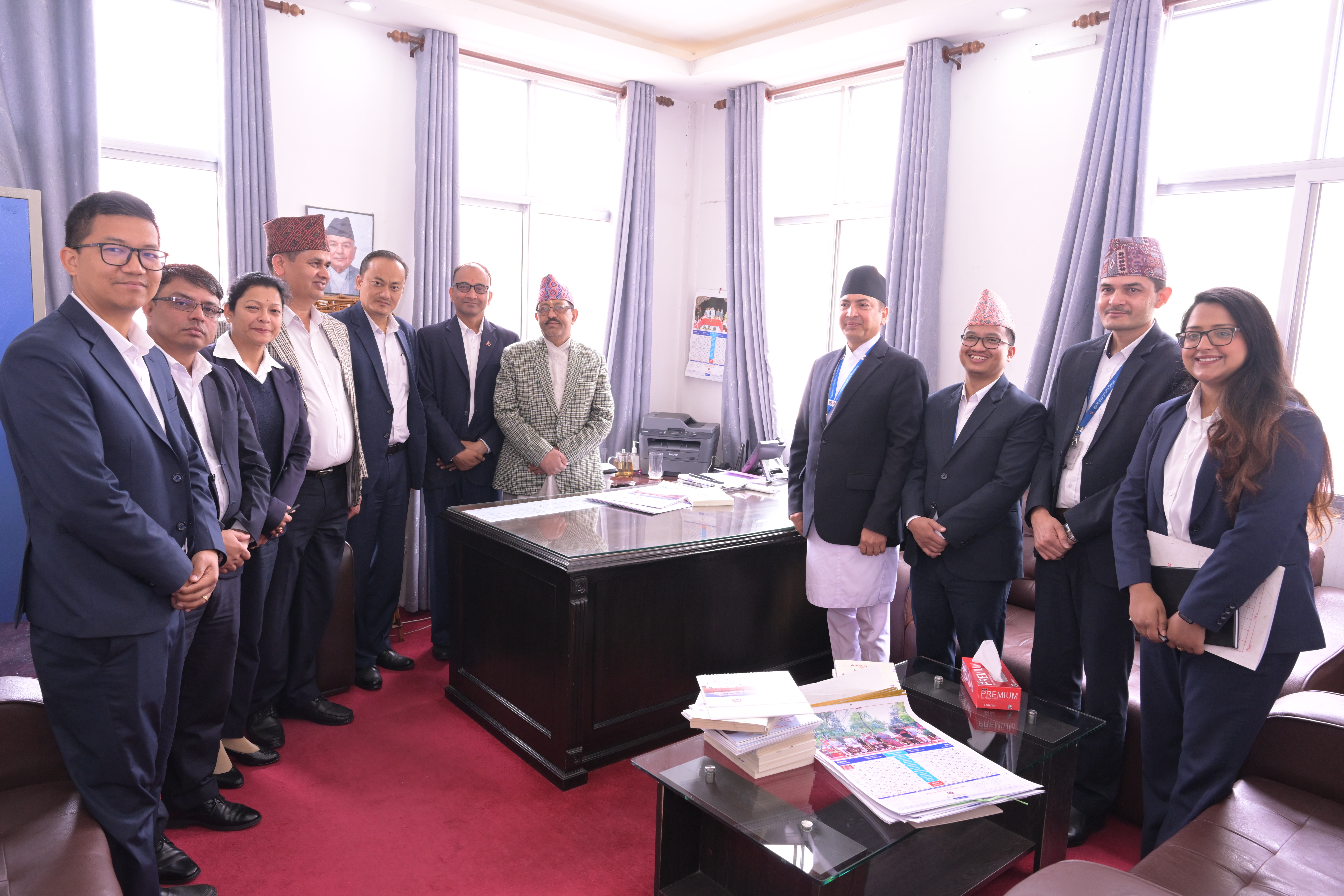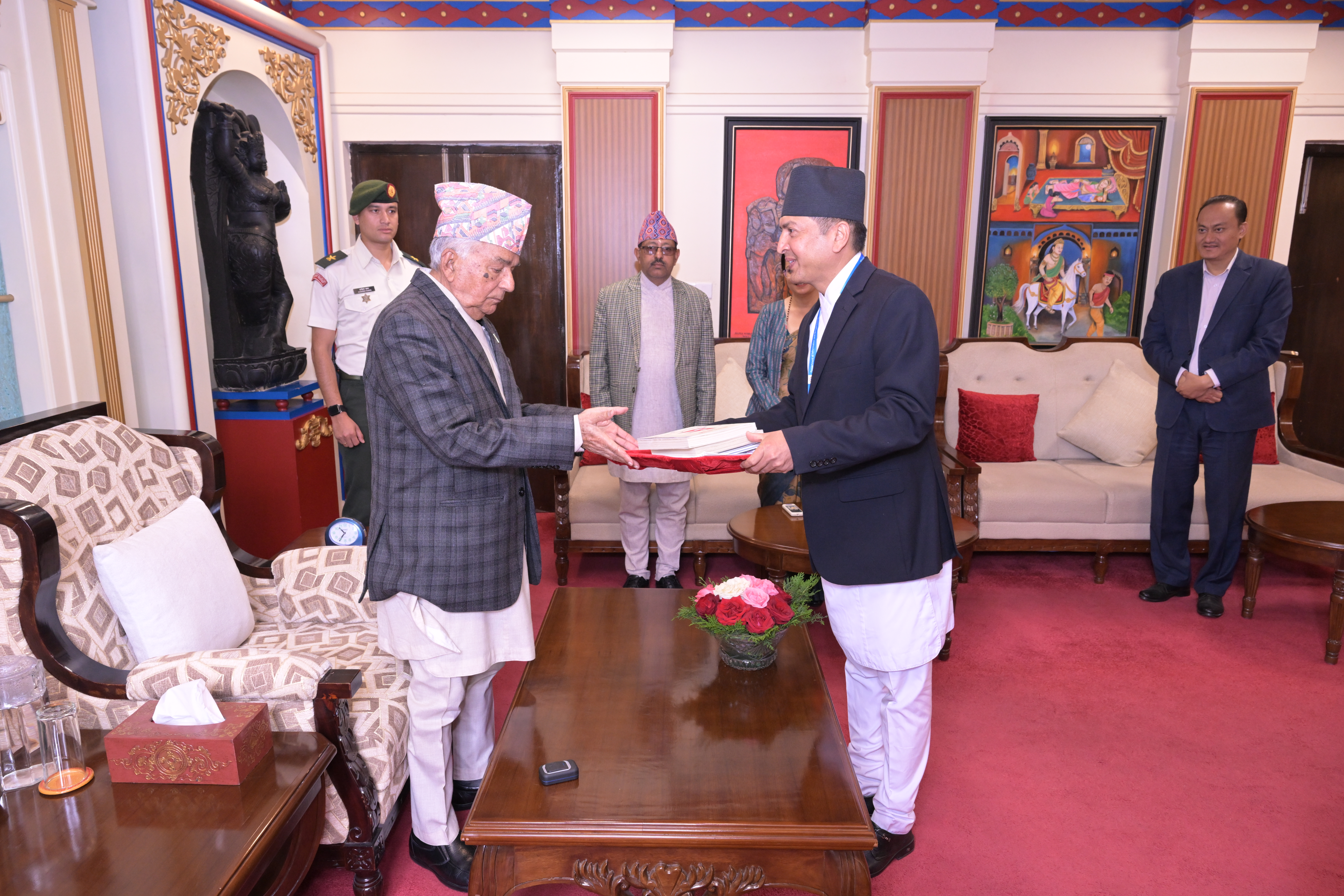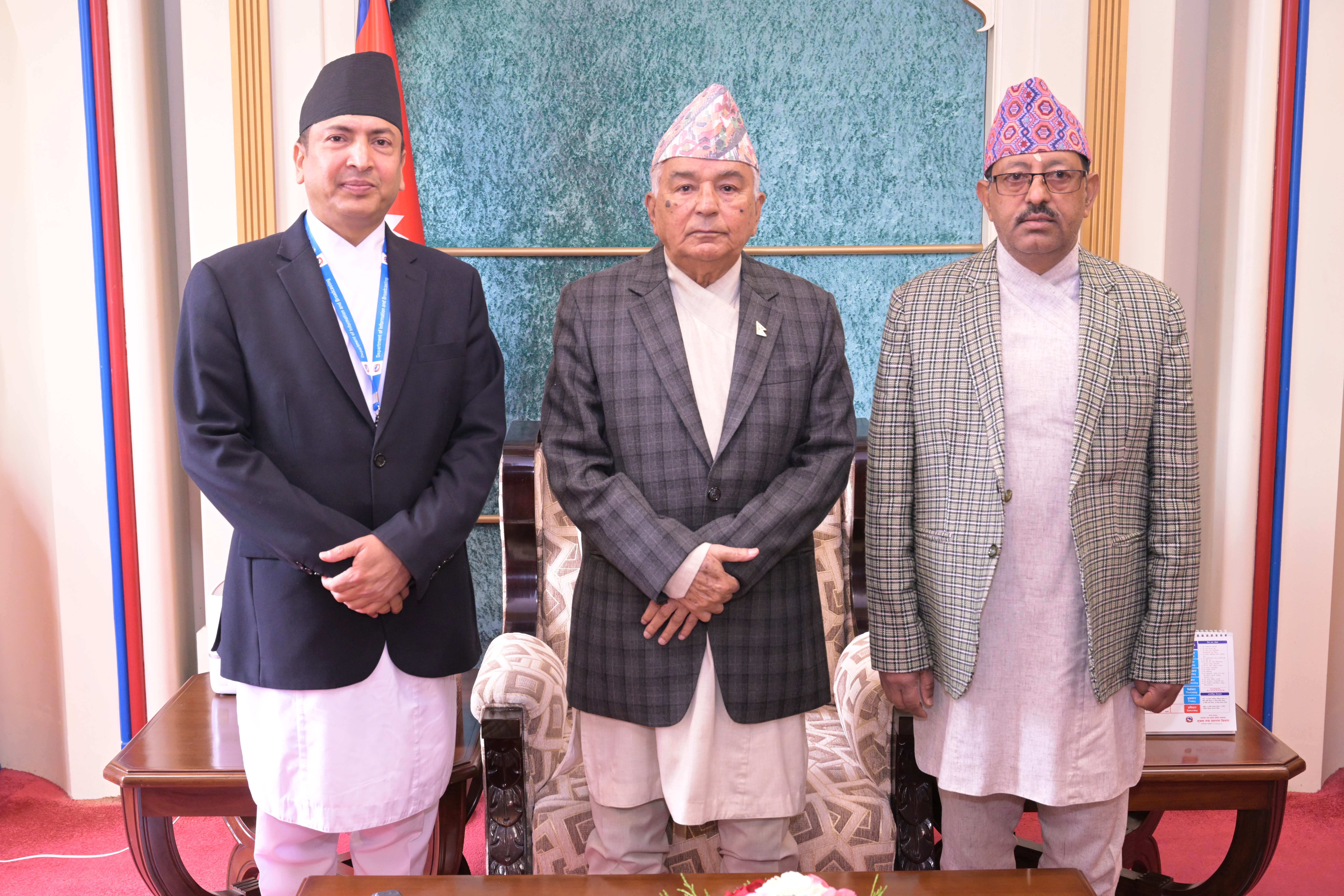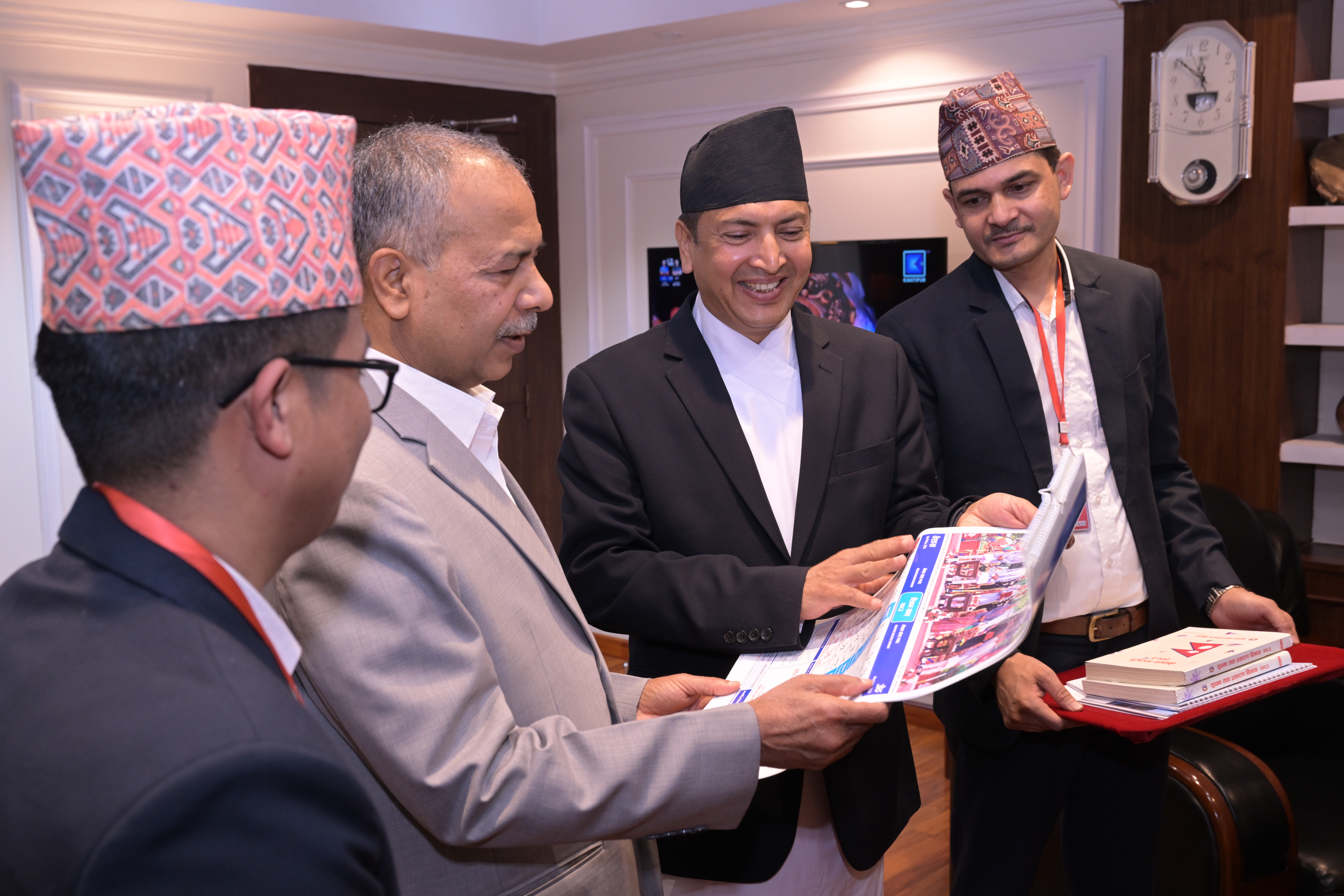 सम्माननीयज्यूहरुलाई २०८३ सालको नेपाल सरकारको आधिकारिक पात्रो तथा नेपाल डायरी पेश गर्नुहुँदै विभागका महानिर्देशक श्री छबिन्द्र पराजुली।